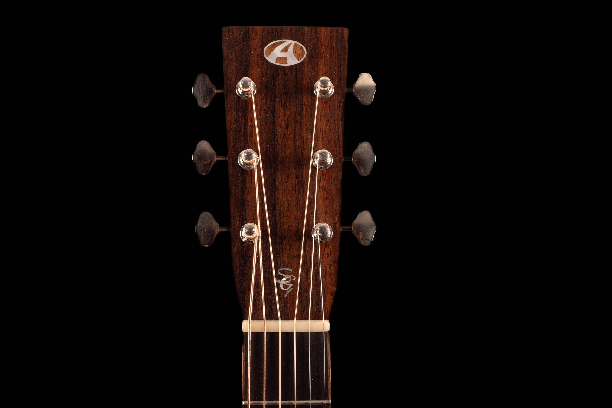 Avenir Logo at Top of Headstock